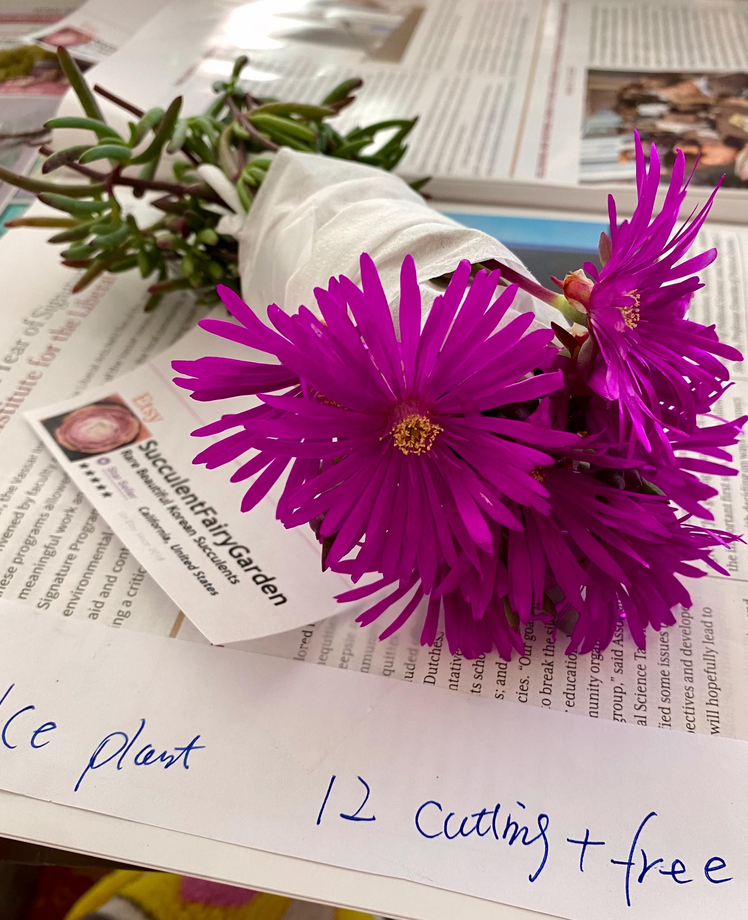 Beautiful Lampranthus, cuttings strings (no roots). You can plant the cuttings and they grow quick and spread vigorously to create an attractive carpet.