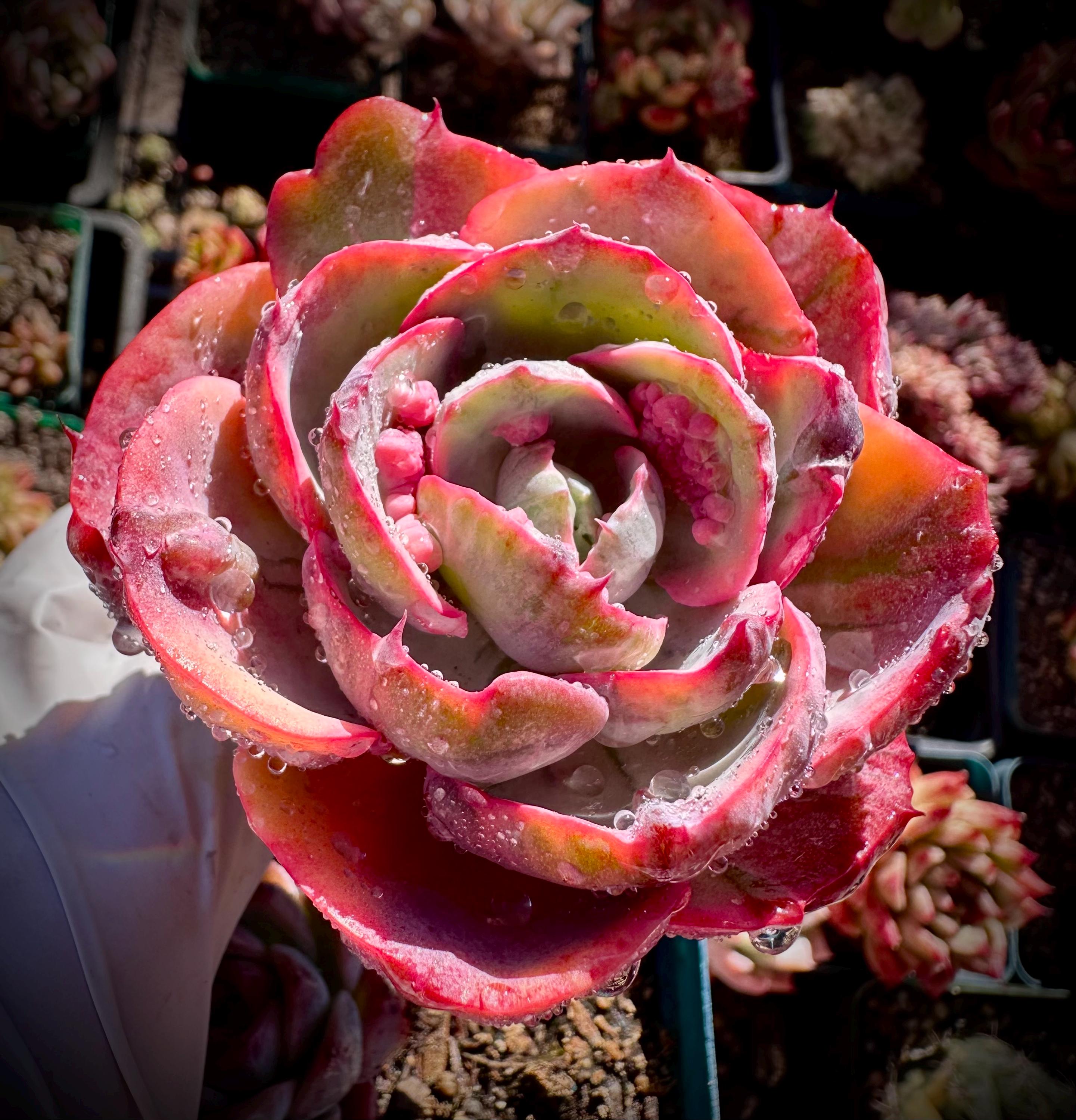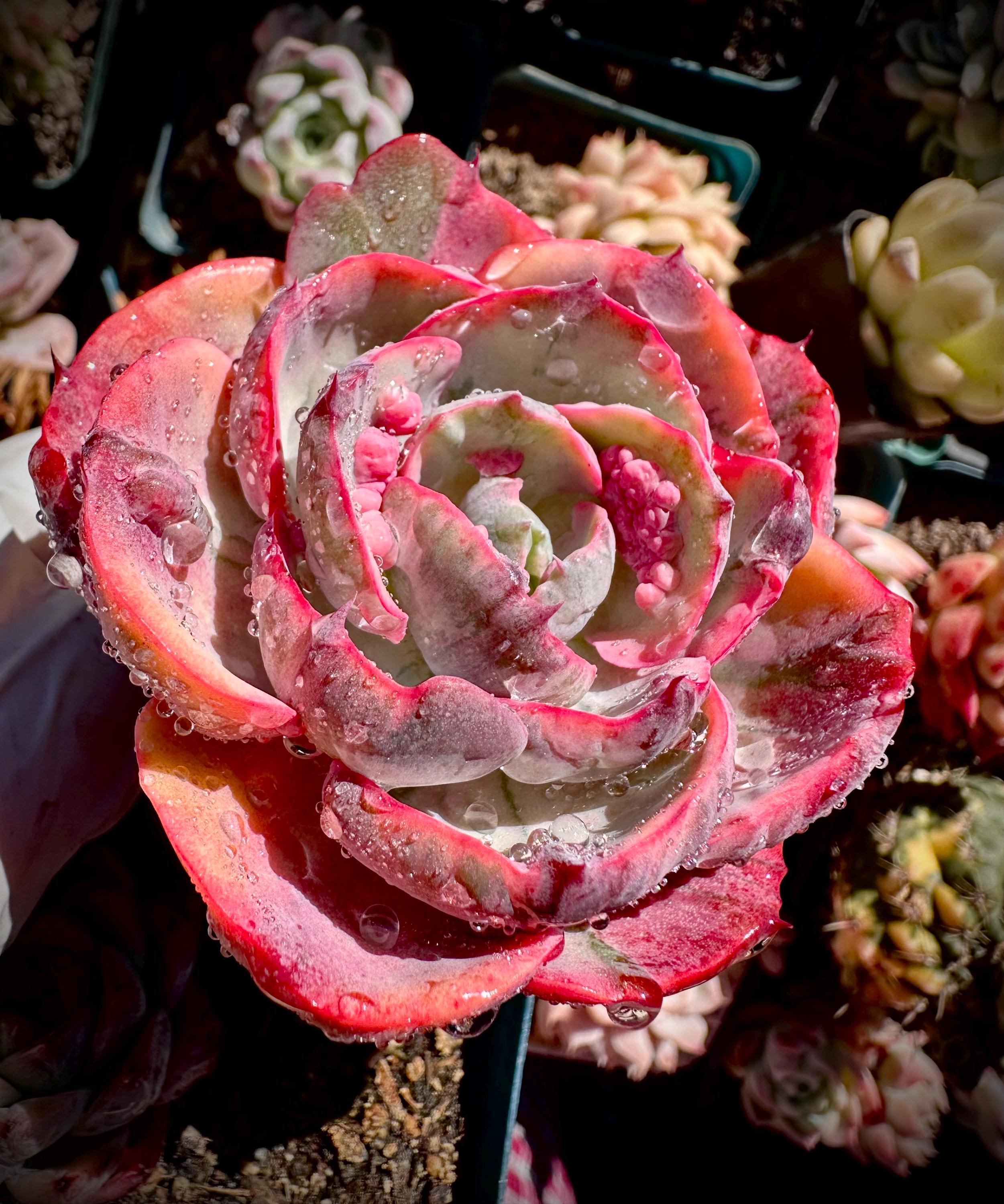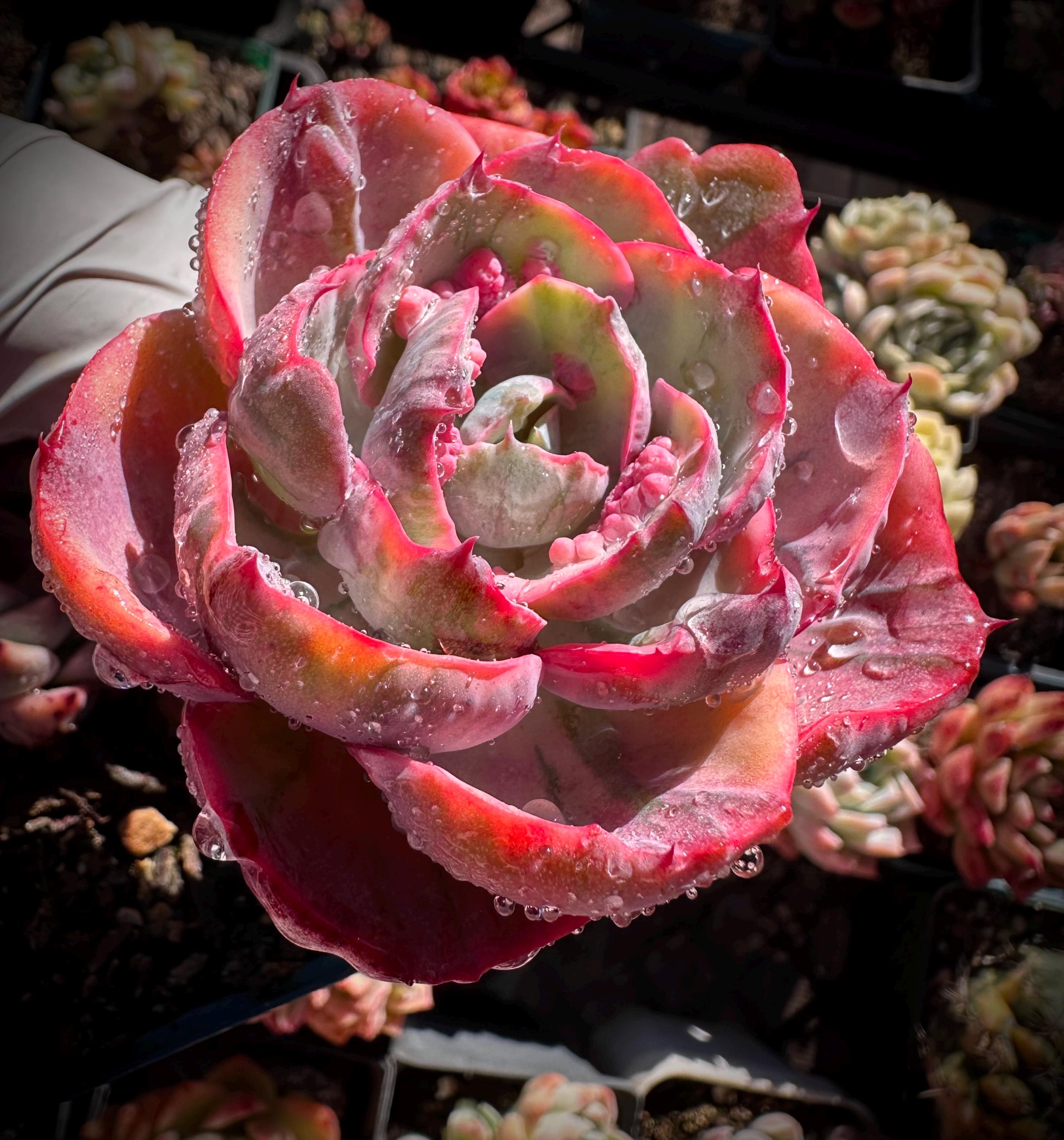 Very beautiful variegated beyonce , this variety with some lovely bumps on the pink leaves