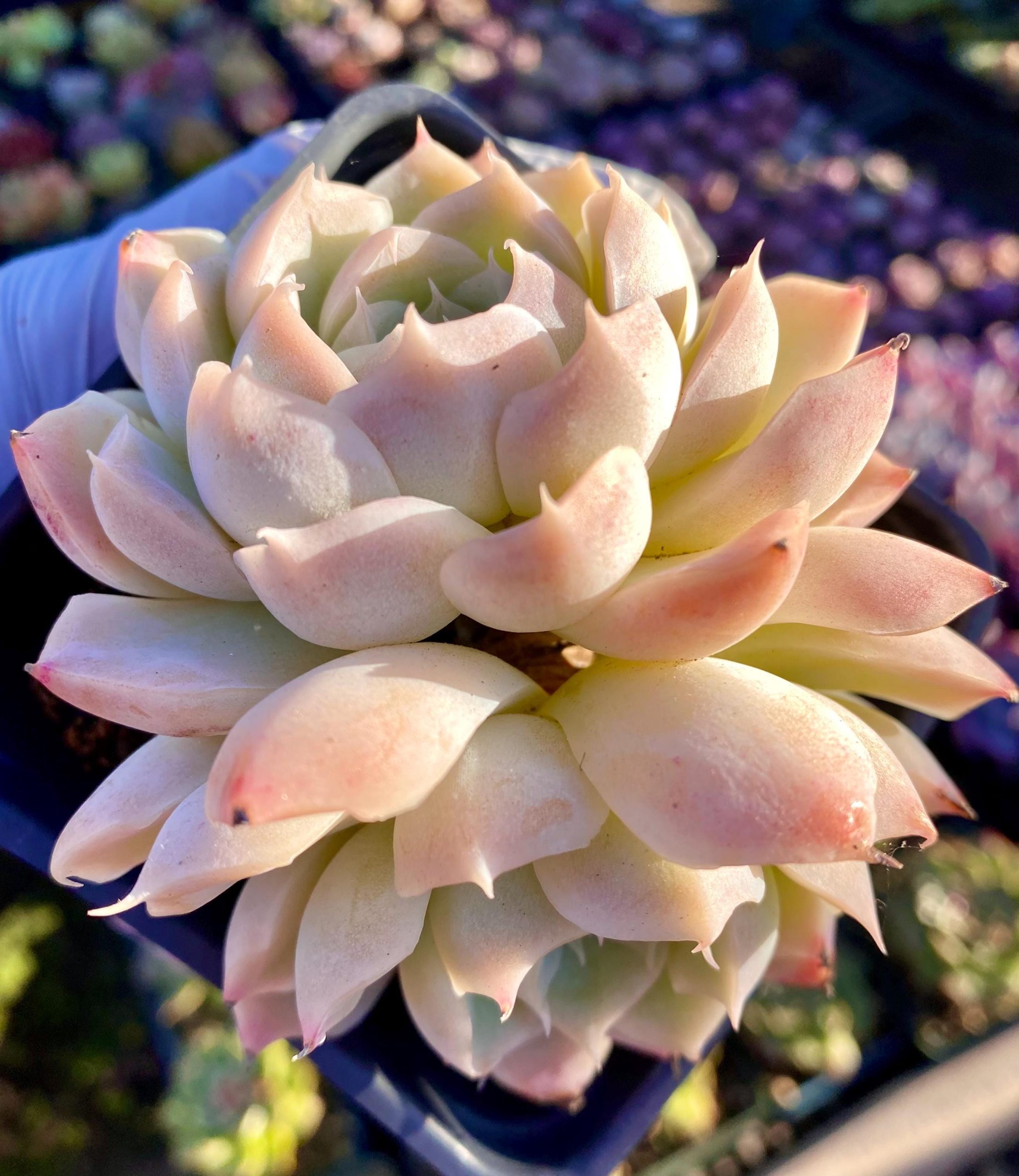 Show in 3.75″ pot, the actual size about 4″ ,HUGE , CHUBBY . PINK , CREAMY texture , 2 heads