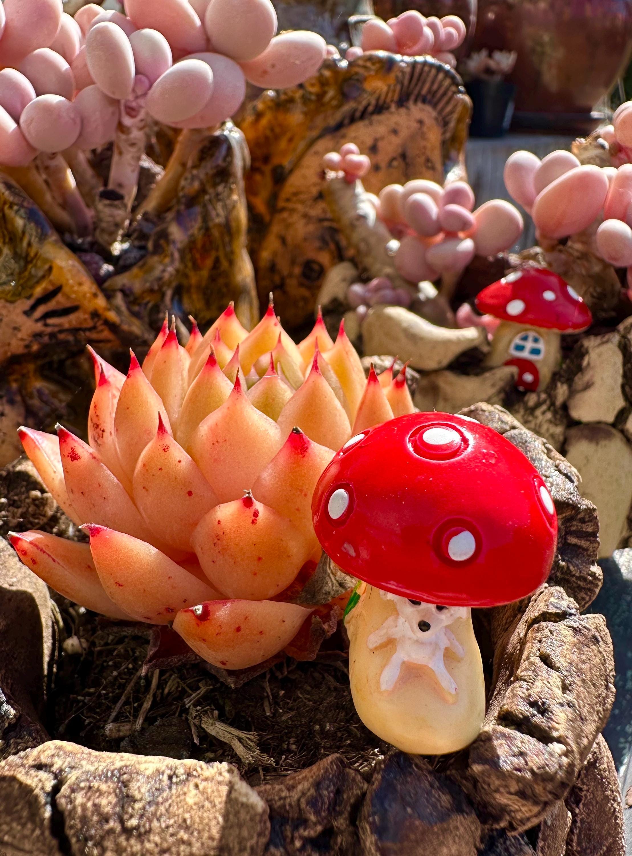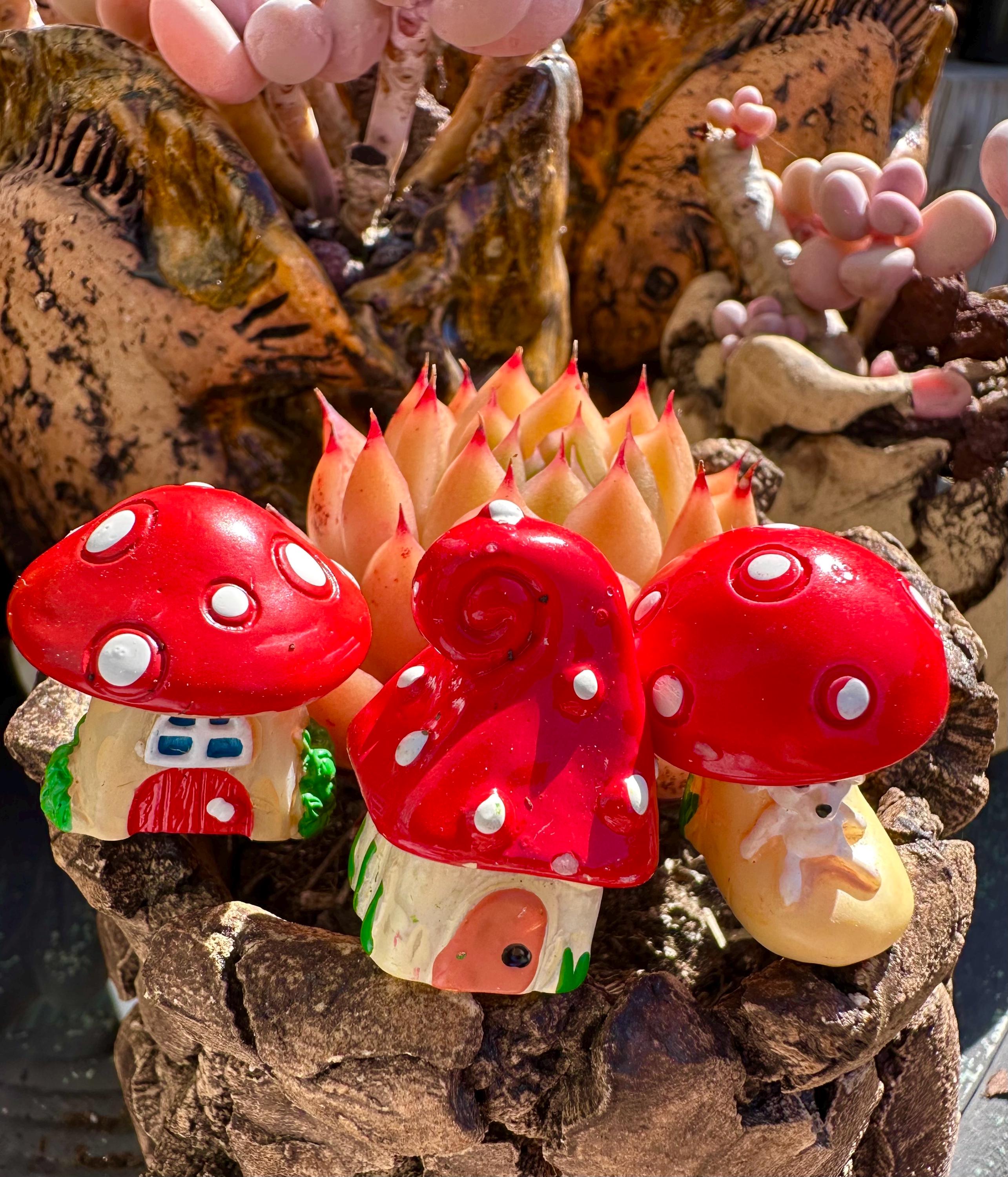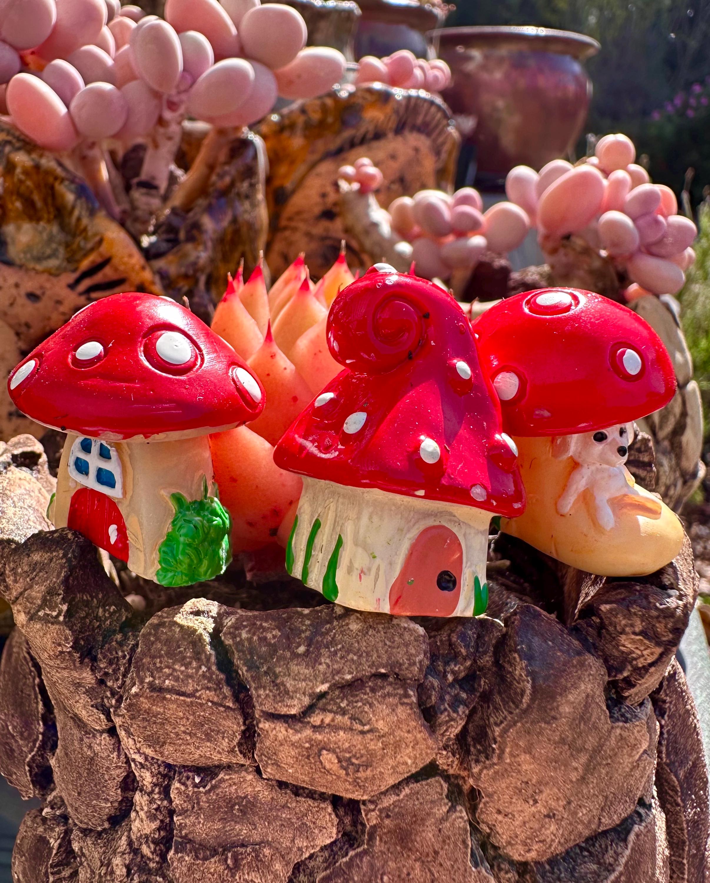 Lovely Mushroom figure set. Small 3 very lovely mini mushrooms , cute , good for succulent bonsai set or arrangement