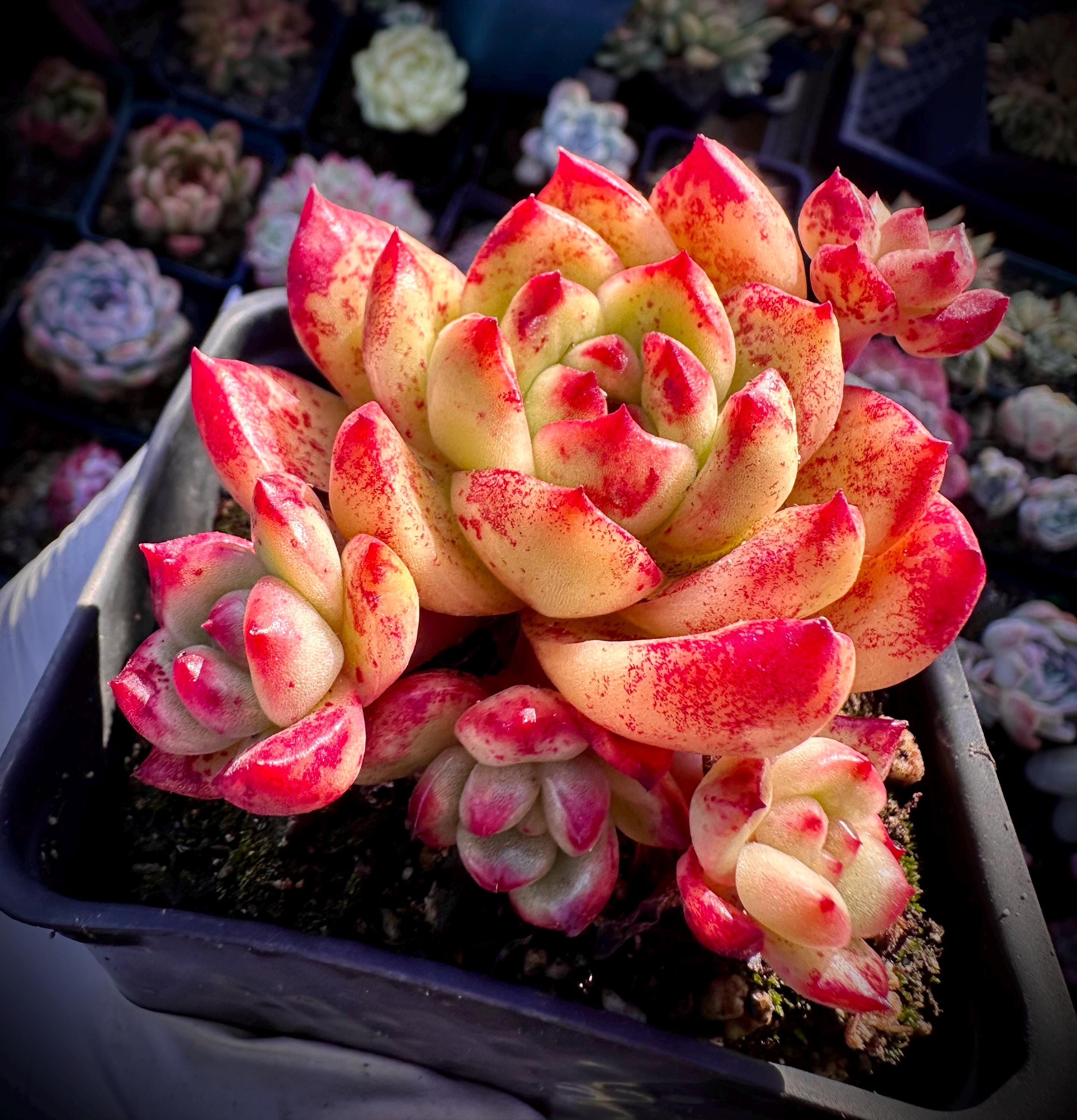9 beautiful rosettes heads cluster with a lot of bloody freckles , AMAZING flowers
