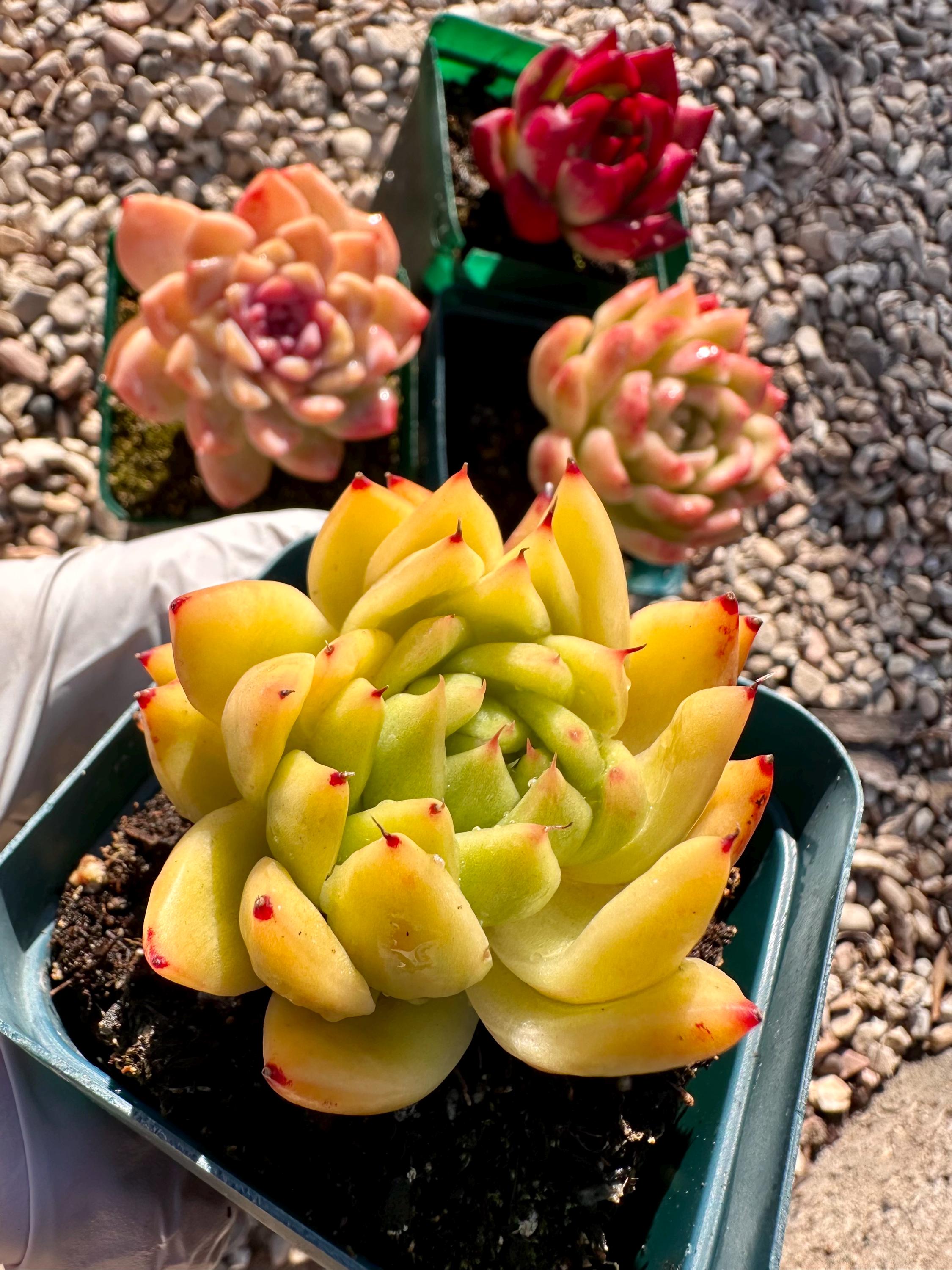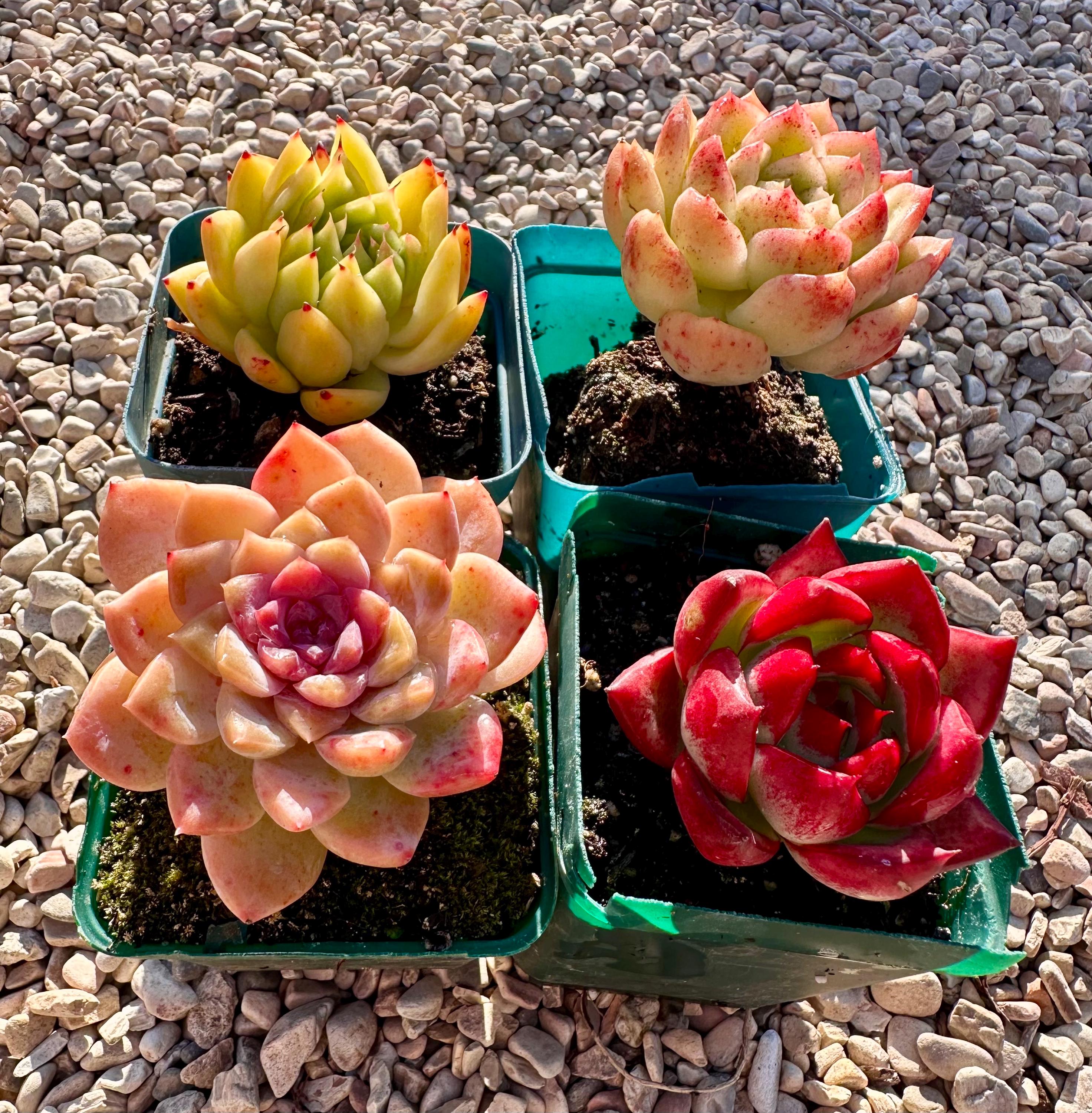 * During shipping, colors may diminish, some leaves may wither and shrivel, some leaves may droop or open wider, some leaves may even fall off, due to the plants stuck in a dark box for several days without soil and the rough handling of USPS, but the color will come back soon after planting and with lots of sunshine and new leaves will grow from the center while older leaves will be consumed and disappear.