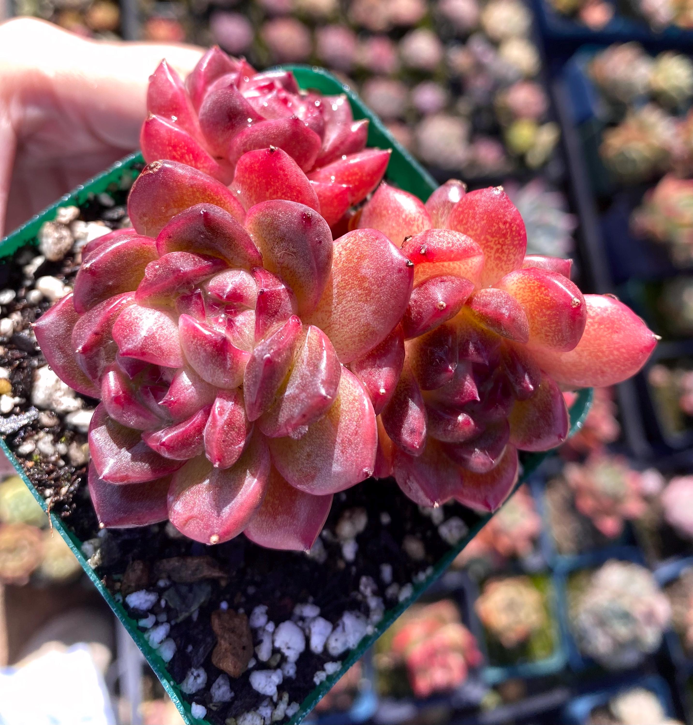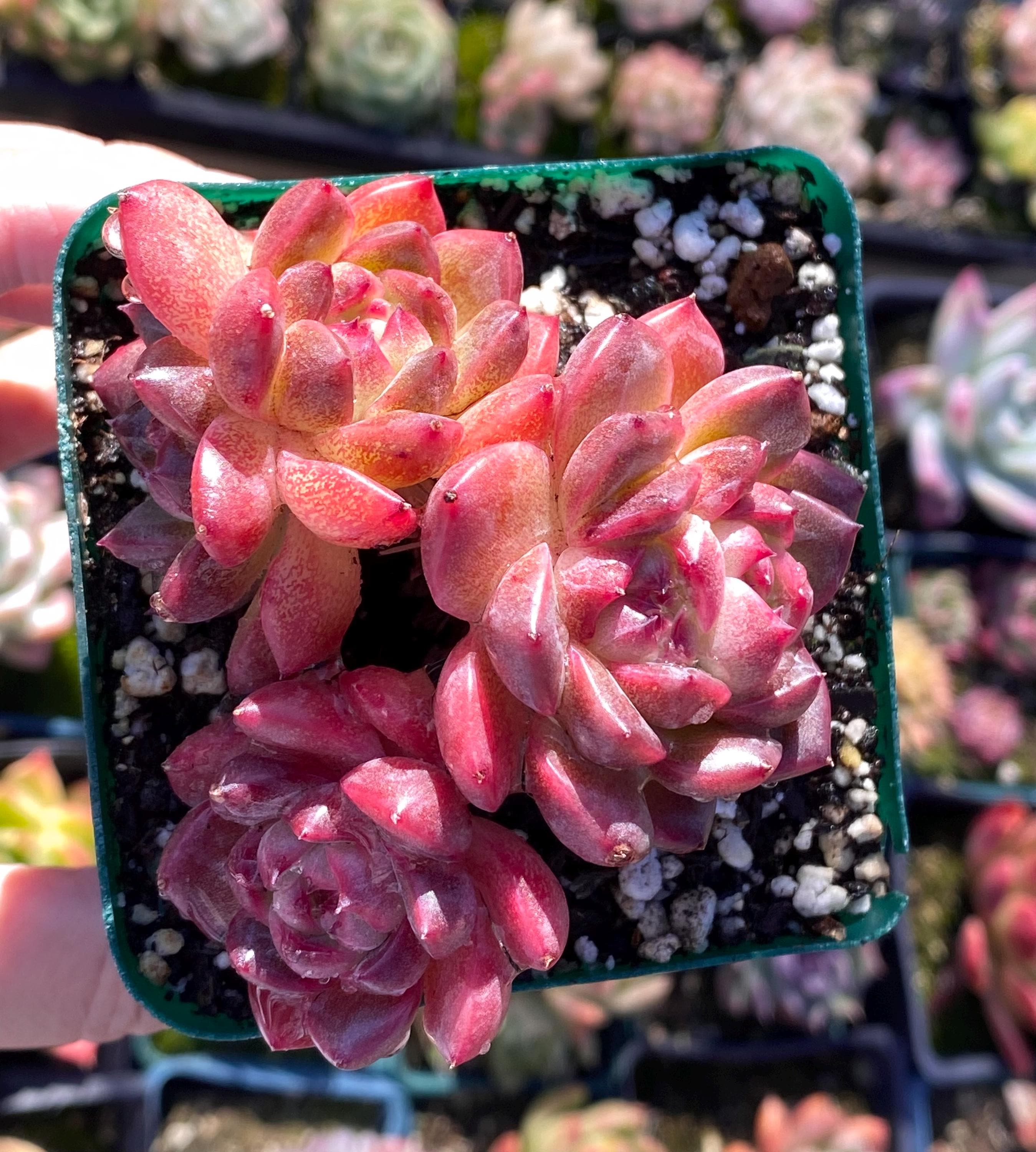 The actual size about 3.5″ , huge cluster ( only for this variety) : 5 heads cluster, pink red creamy translucent little rosettes, very very pretty