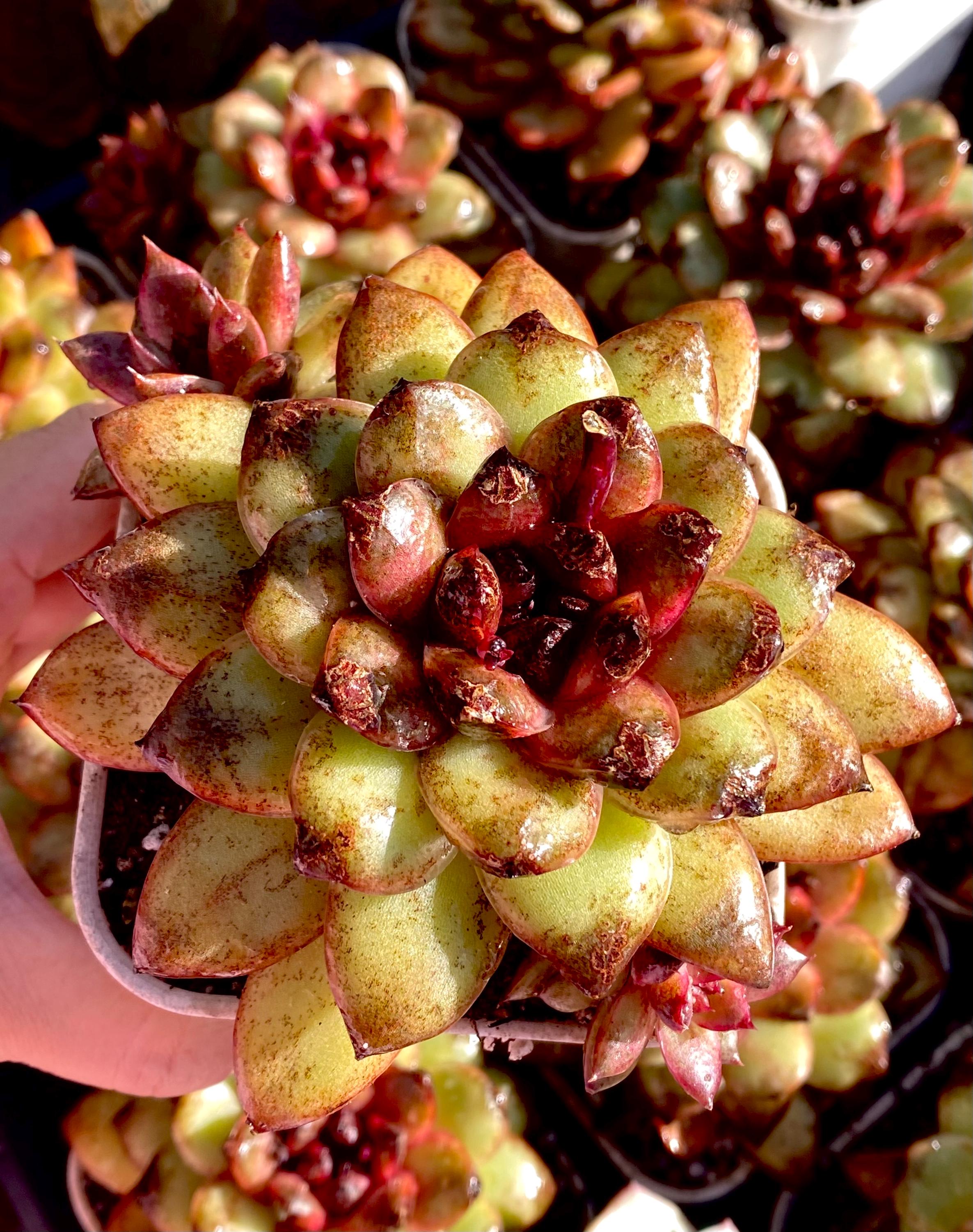 This super cool dark variety will become more dark with deep red honey heart œ in cooler season ( it’s becoming now ) under sunlight stress
