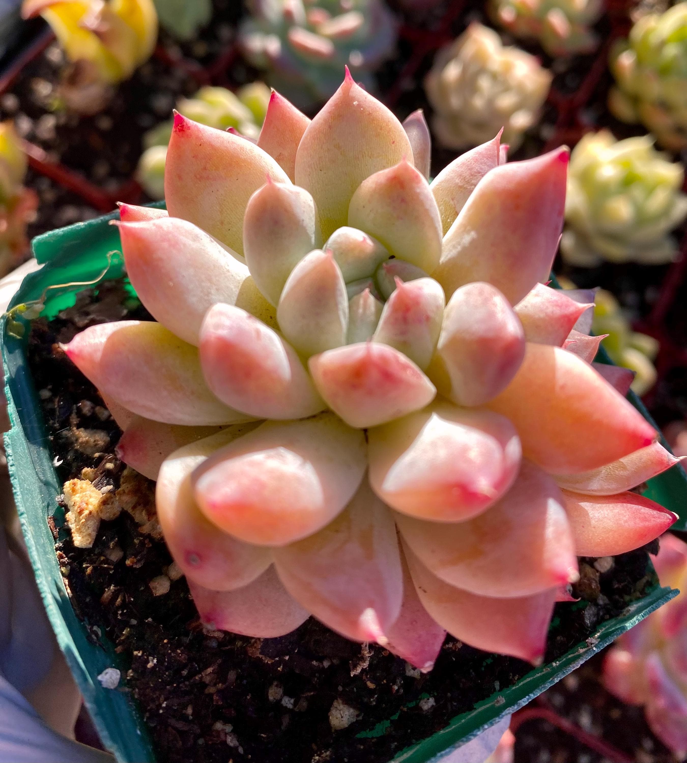 * During shipping, colors may diminish, some leaves may wither and shrivel, some leaves may droop or open wider, some leaves may even fall off, due to the plants stuck in a dark box for several days without soil and the rough handling of USPS, but the color will come back soon after planting and with lots of sunshine and new leaves will grow from the center while older leaves will be consumed and disappear.