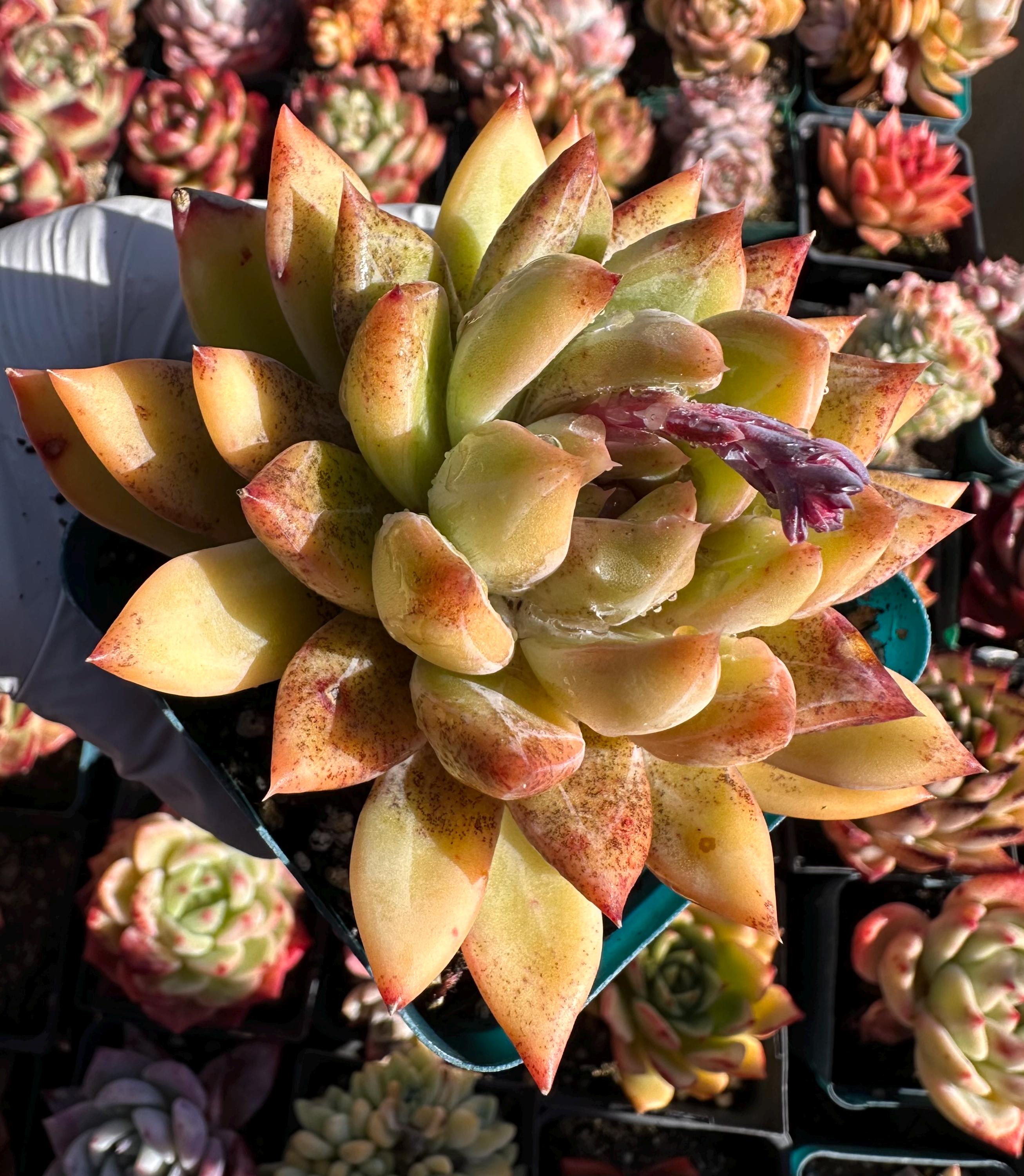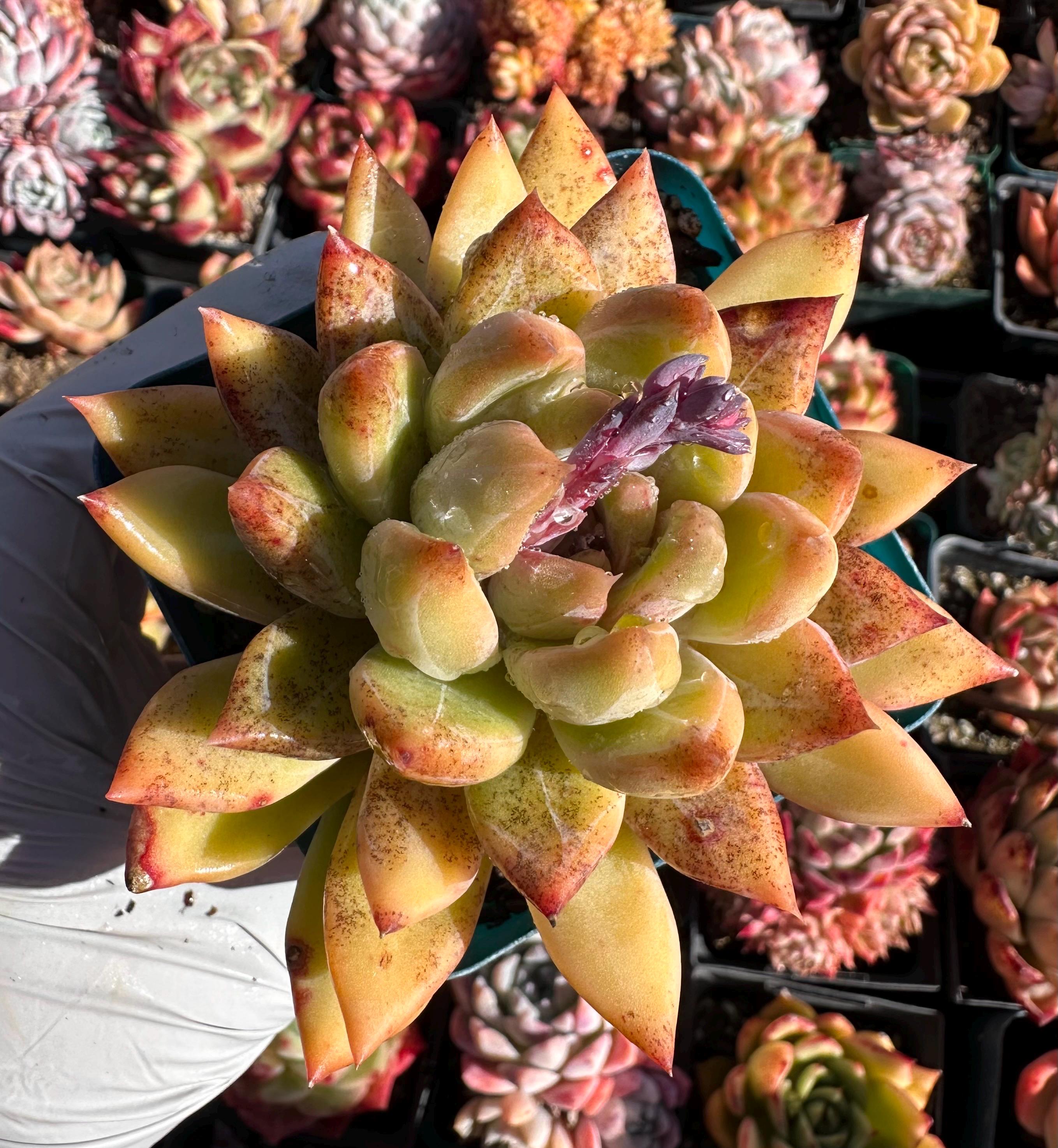 * During shipping, colors may diminish, some leaves may wither and shrivel, some leaves may droop or open wider, some leaves may even fall off, due to the plants stuck in a dark box for several days without soil and the rough handling of USPS, but the color will come back soon after planting and with lots of sunshine and new leaves will grow from the center while older leaves will be consumed and disappear.