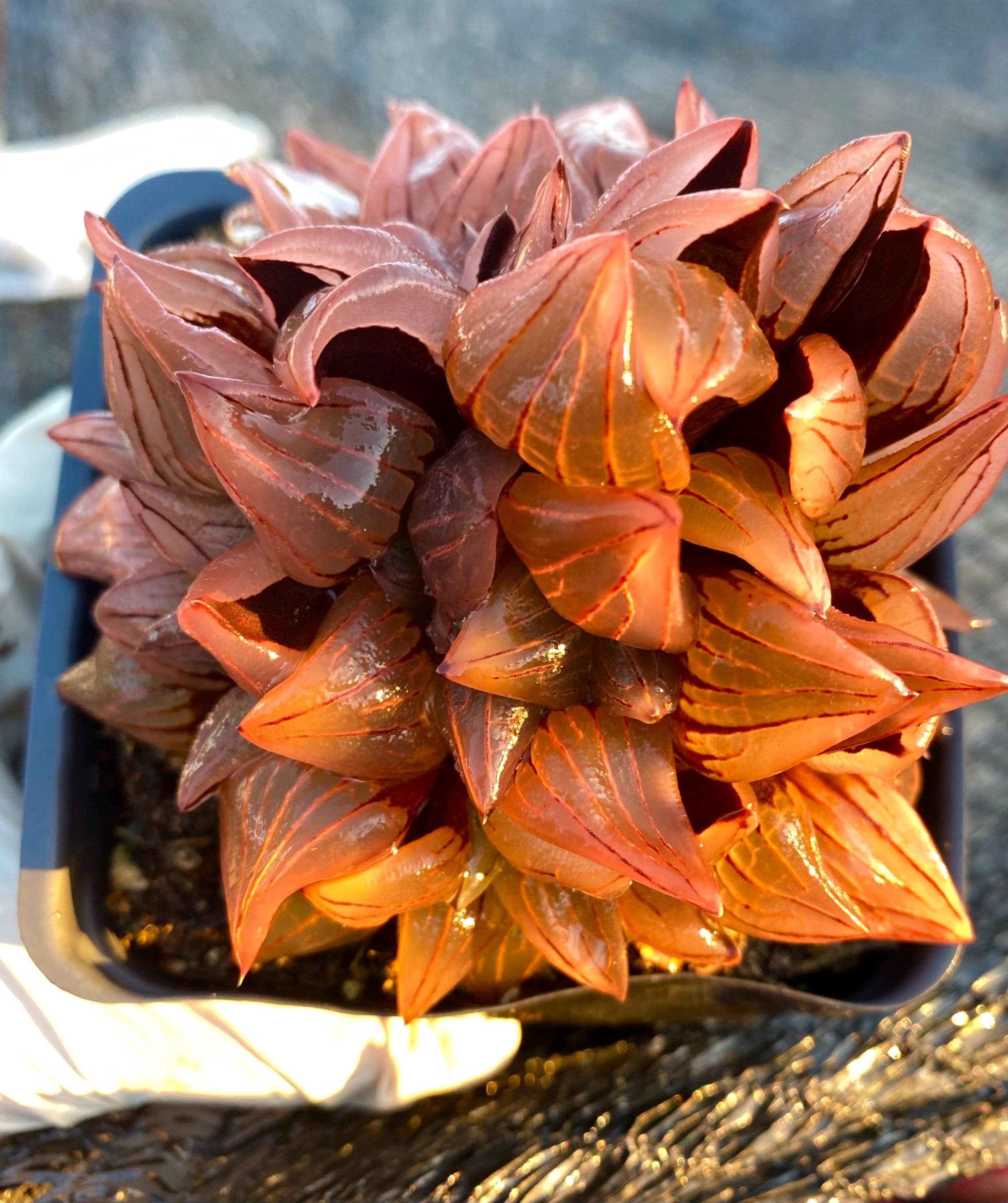 * During shipping, colors may diminish, some leaves may wither and shrivel, some leaves may droop or open wider, some leaves may even fall off, due to the plants stuck in a dark box for several days without soil and the rough handling of USPS, but the color will come back soon after planting and with lots of sunshine and new leaves will grow from the center while older leaves will be consumed and disappear.