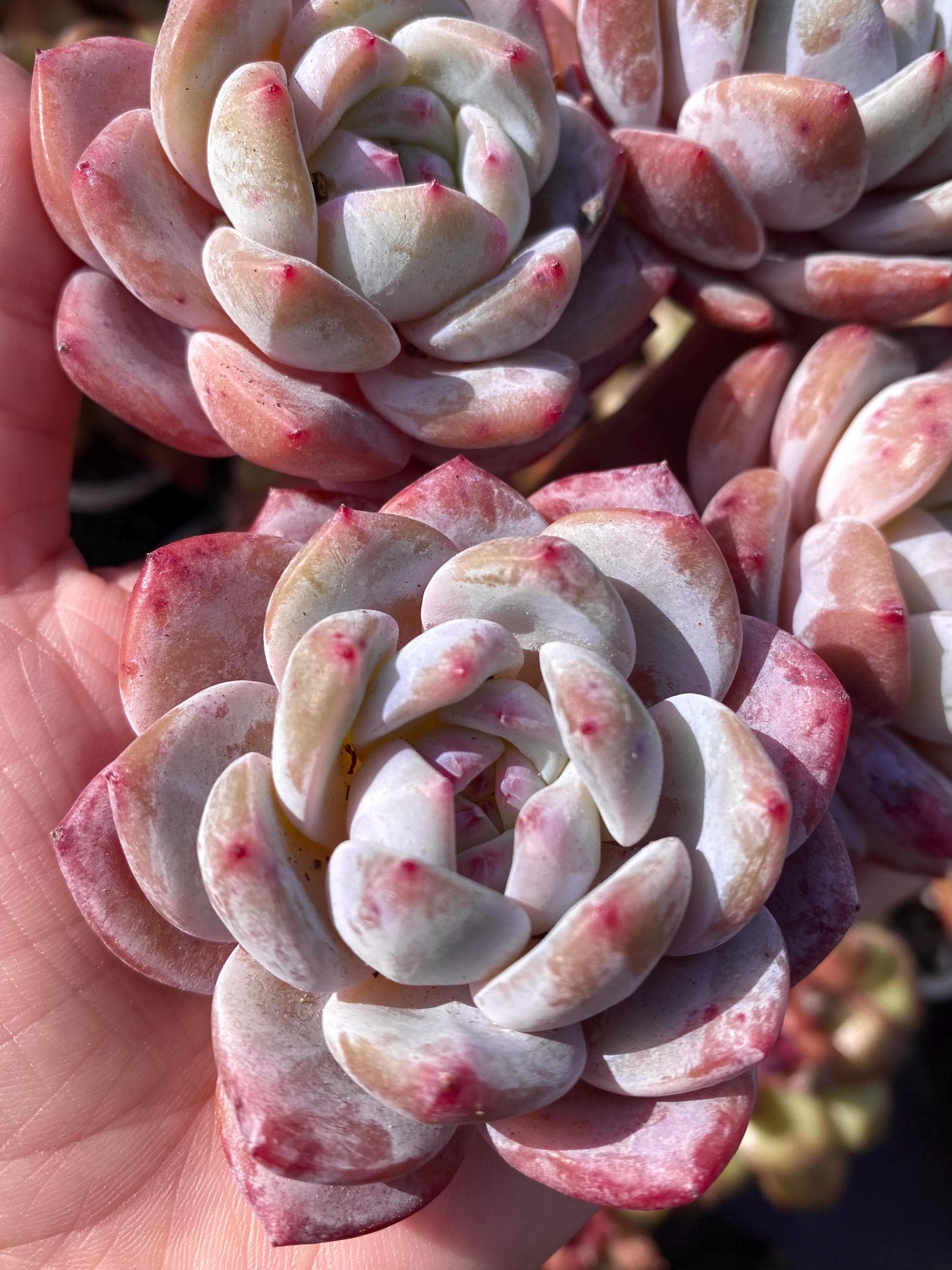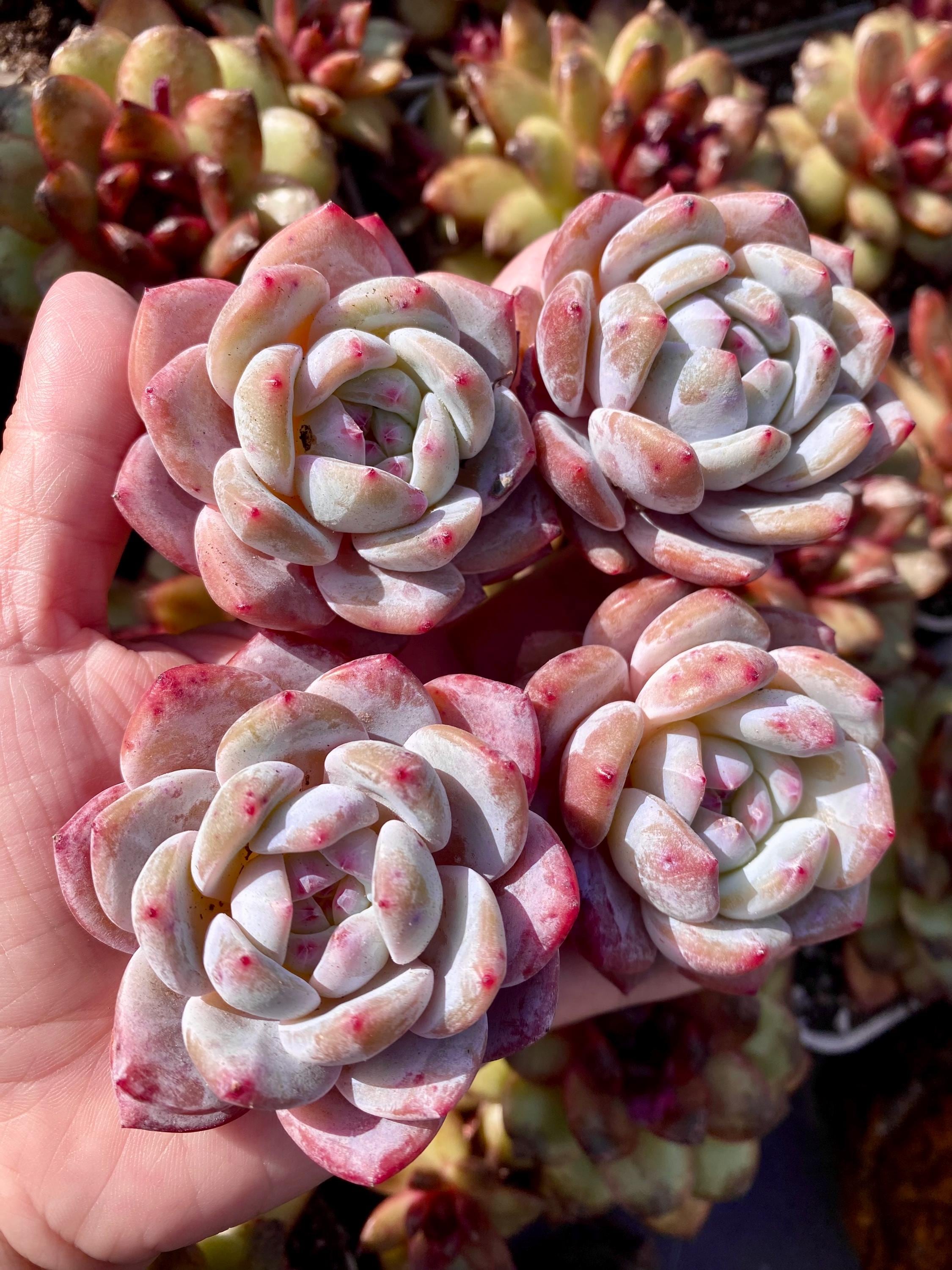 Rare succulent: imported echeveria hybrid ( Colorata + Monroe crossed). , pink colorful with thick powder variety
