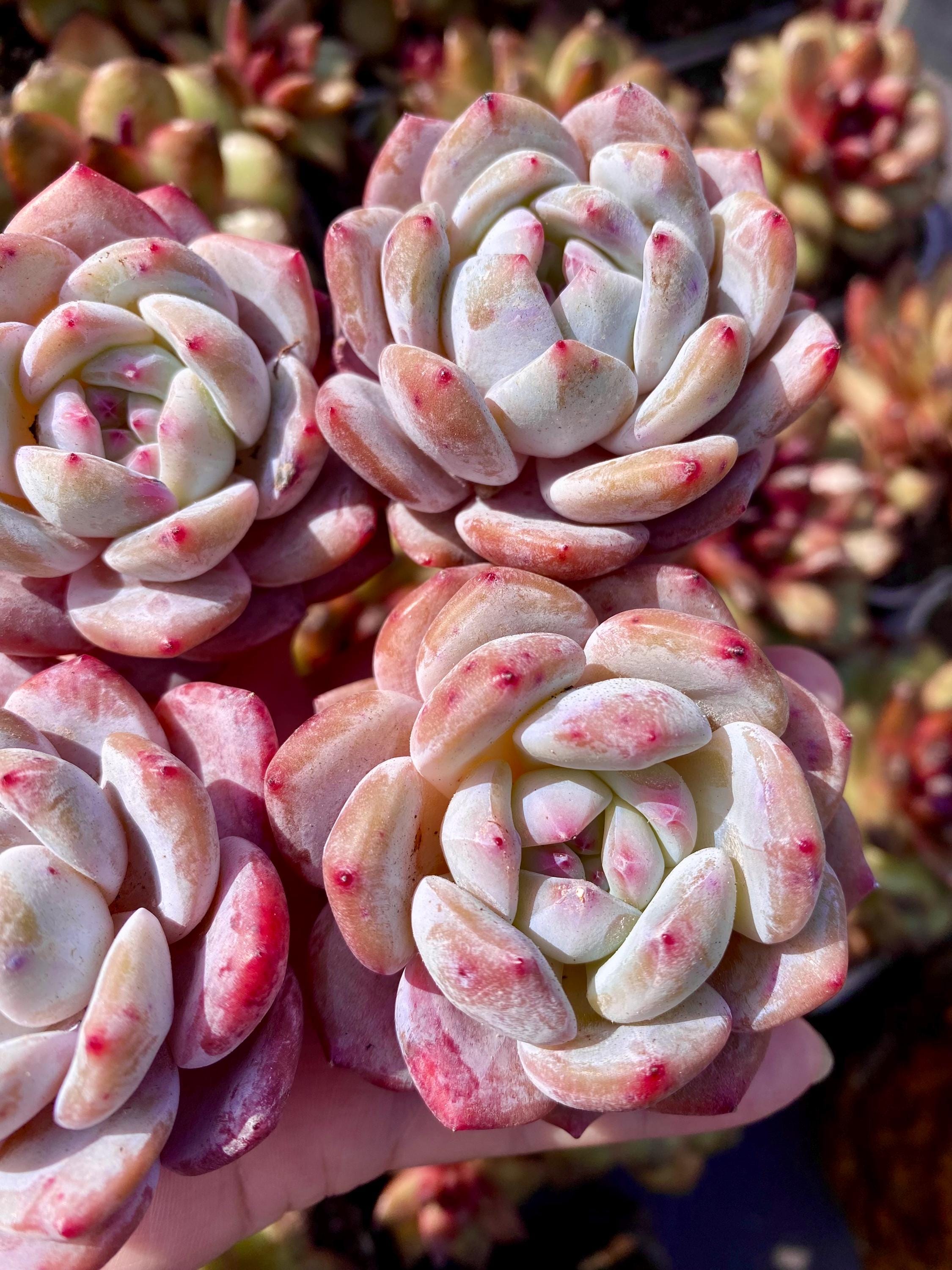 Rare succulent: imported echeveria hybrid ( Colorata + Monroe crossed). , pink colorful with thick powder variety