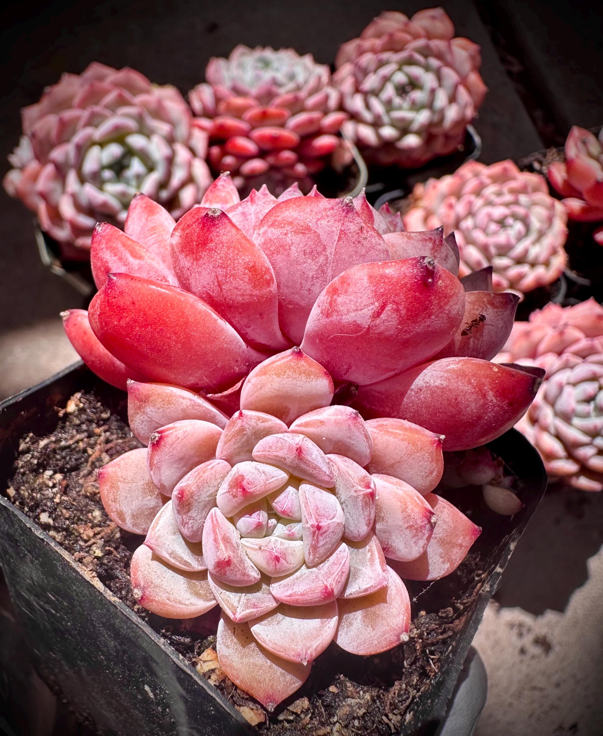 single head and 2 heads double also available now , you will get the one in the pictures 4-9 , randomly selected from these , they are all very similar and beautiful, healthy. , I took these photos on August 5 , hot summer , they are still very pink colorful, this beautiful variety has thick powder, they are full pink with honey heart in cooler weather, more beautiful. amazing variety