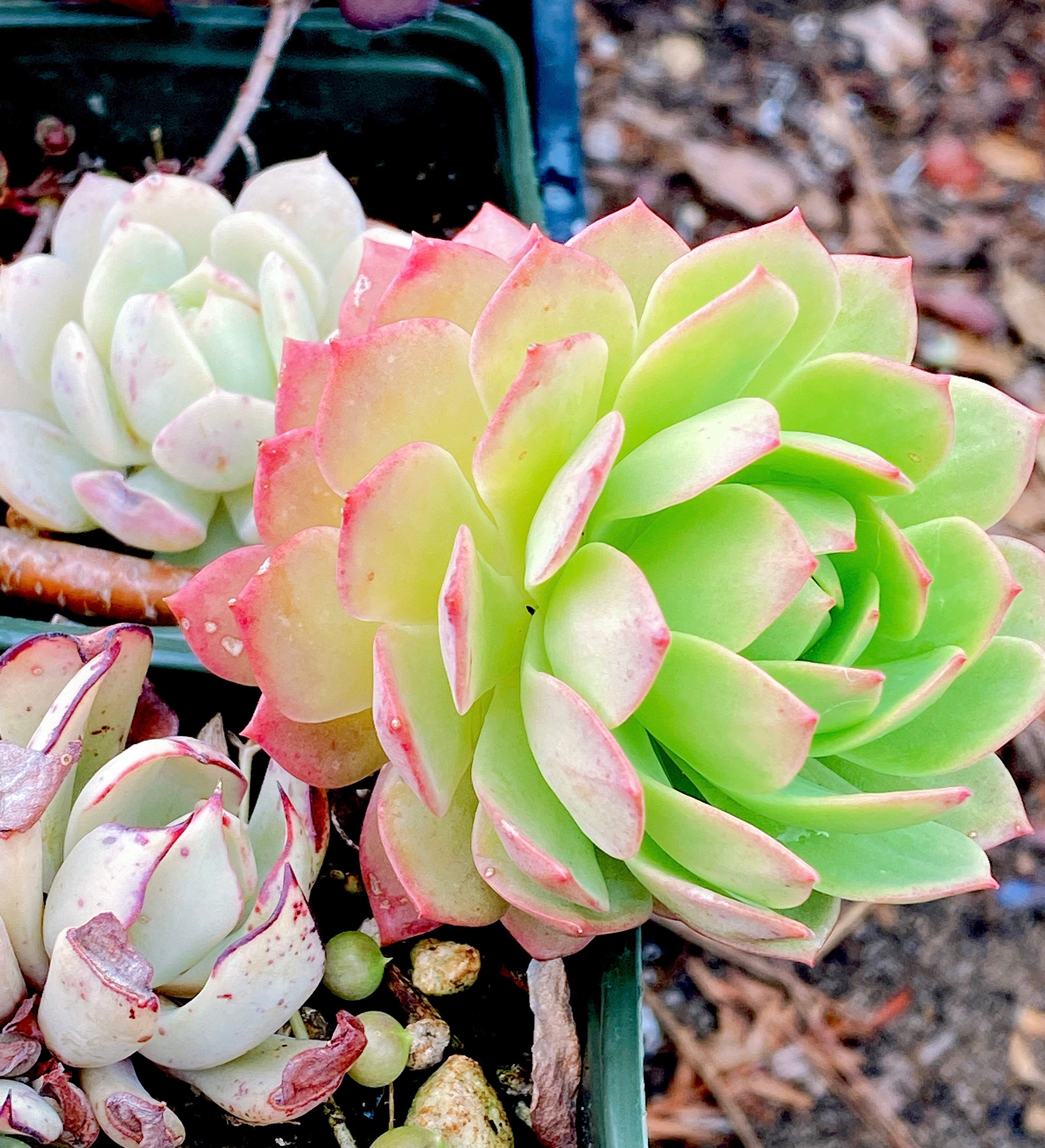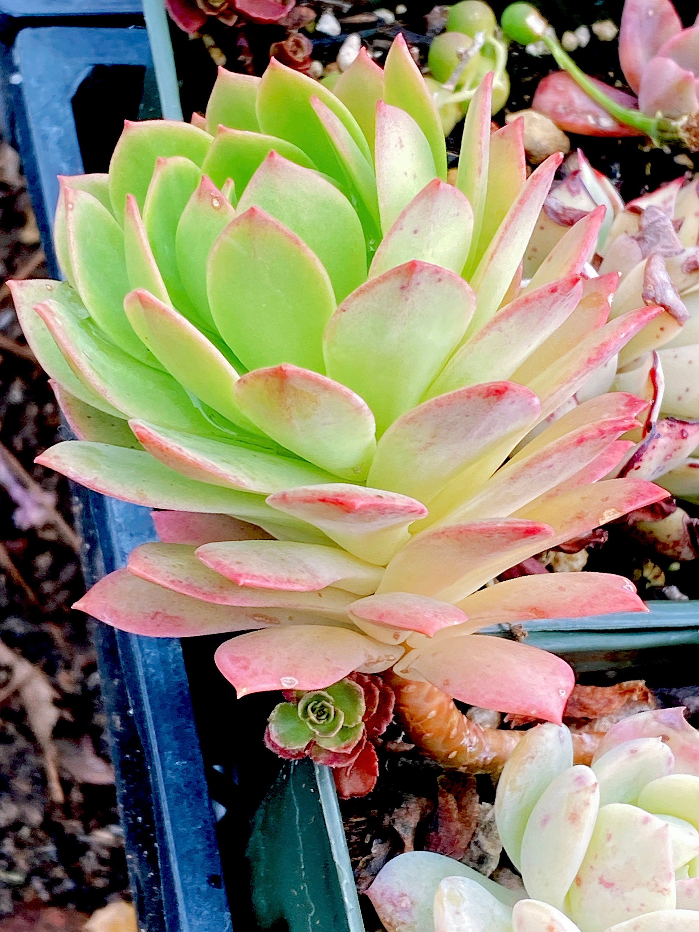 * During shipping, colors may diminish, some leaves may wither and shrivel, some leaves may droop or open wider, some leaves may even fall off, due to the plants stuck in a dark box for several days without soil and the rough handling of USPS, but the color will come back soon after planting and with lots of sunshine and new leaves will grow from the center while older leaves will be consumed and disappear.