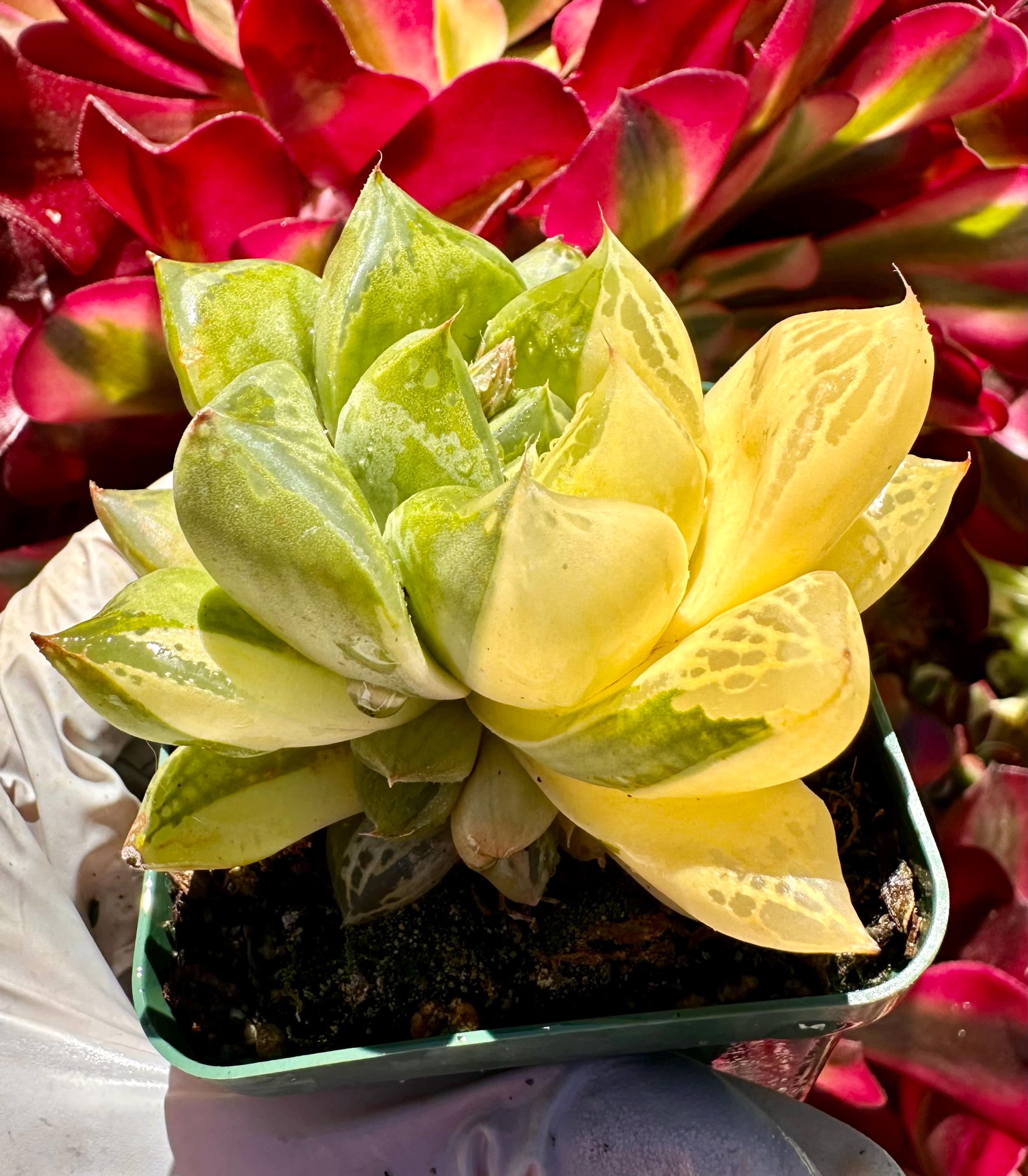 Very cute/ chubby and colorful , bright creamy colorful variegation with crystal transparent , half yin yang â˜¯ï¸ variegated cluster
