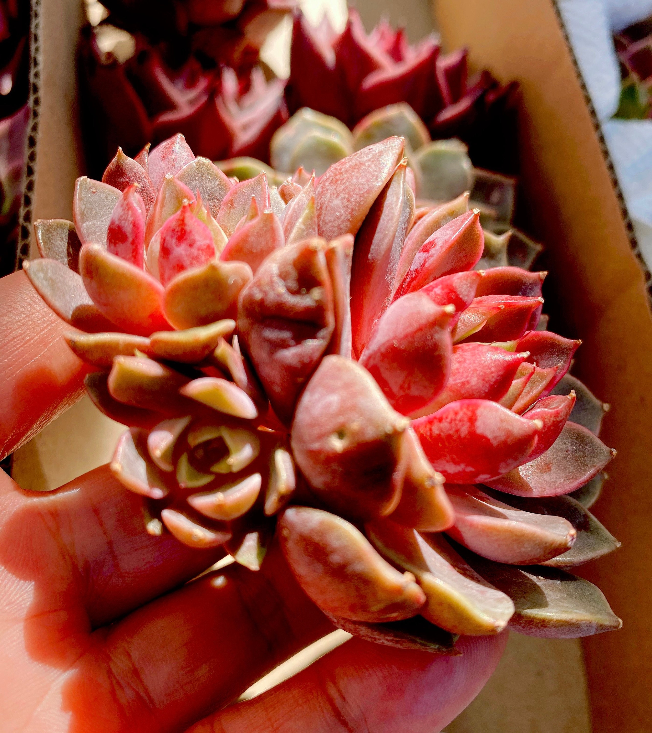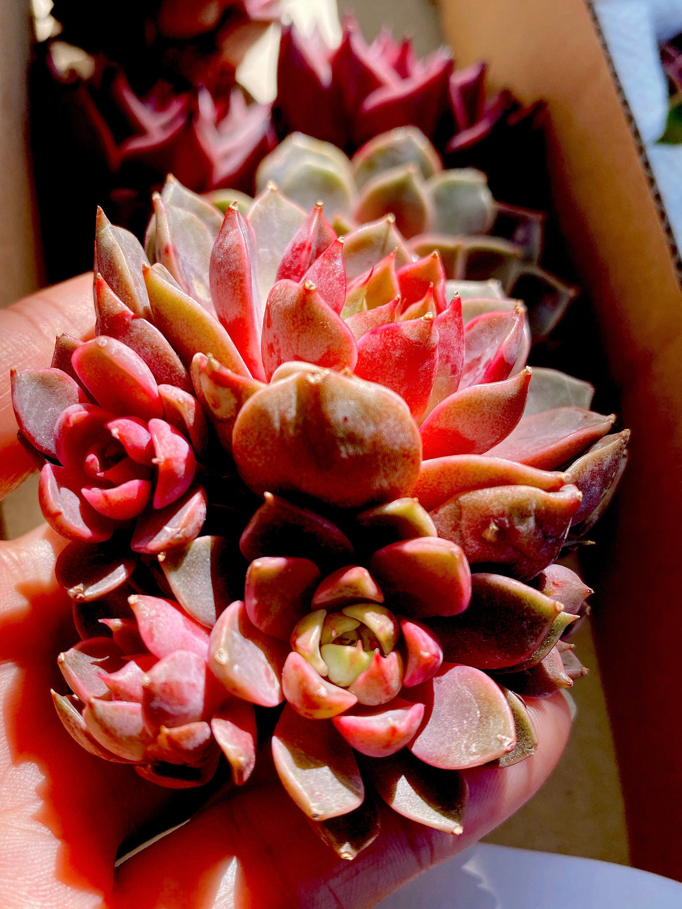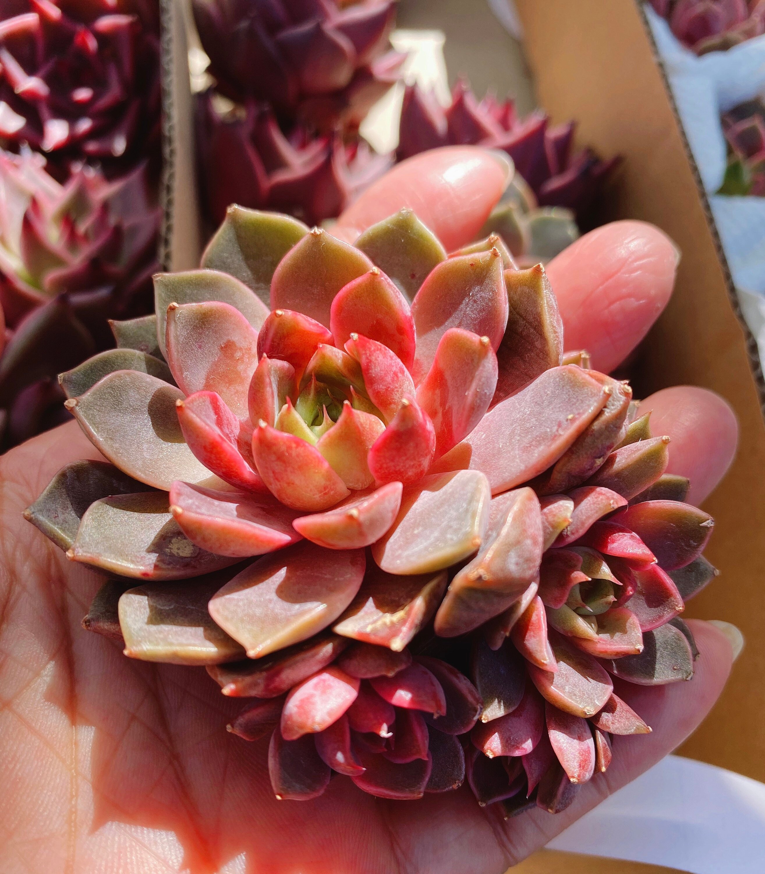 Single head 2”-3” each in size Almost of them have babies The single heads all very similar, Randomly selected This variety will grow some bloody freckles Love full sunlight They will become more pink + orange or purple with bloody patterns under sunshine stress in cool season , the beautiful colors depend on sunlight and […]