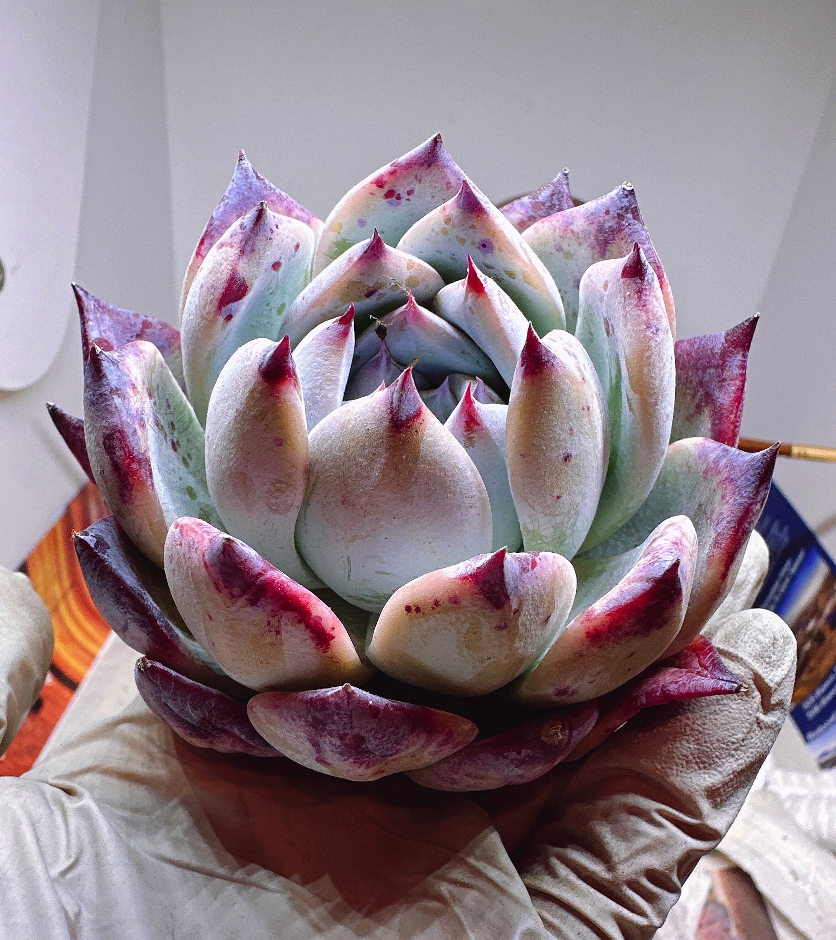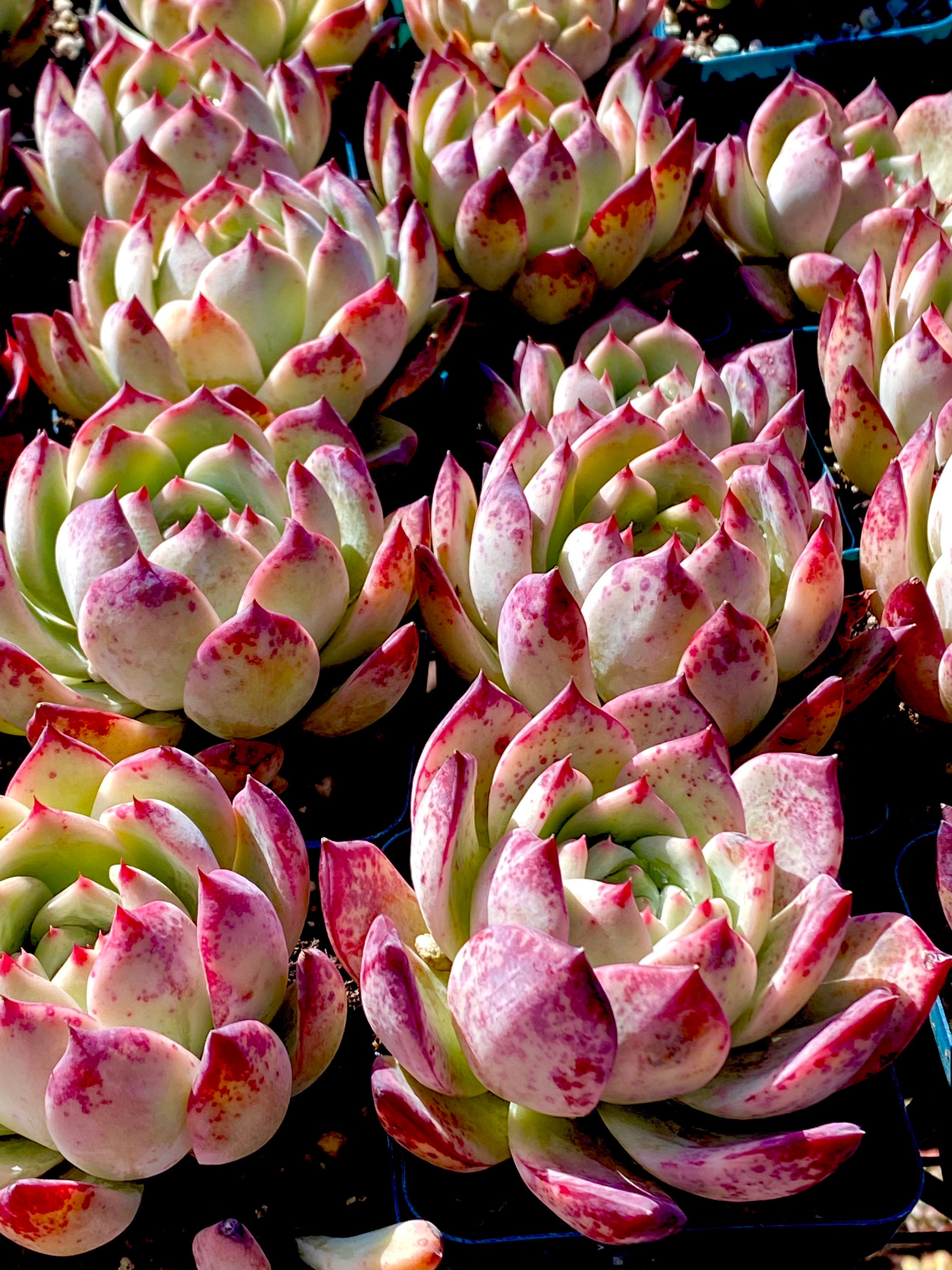 The pictures 1-4 is a four head cluster: one biggest mom plus 3 babies Show in 1 gallon pot, this cluster actual size is about 6.5”-7” , very chubby and healthy, a lot of amazing bloody freckles on the leaves, perfect condition for a bouquet , unique beauty The pictures 5-9 is single head Thick […]