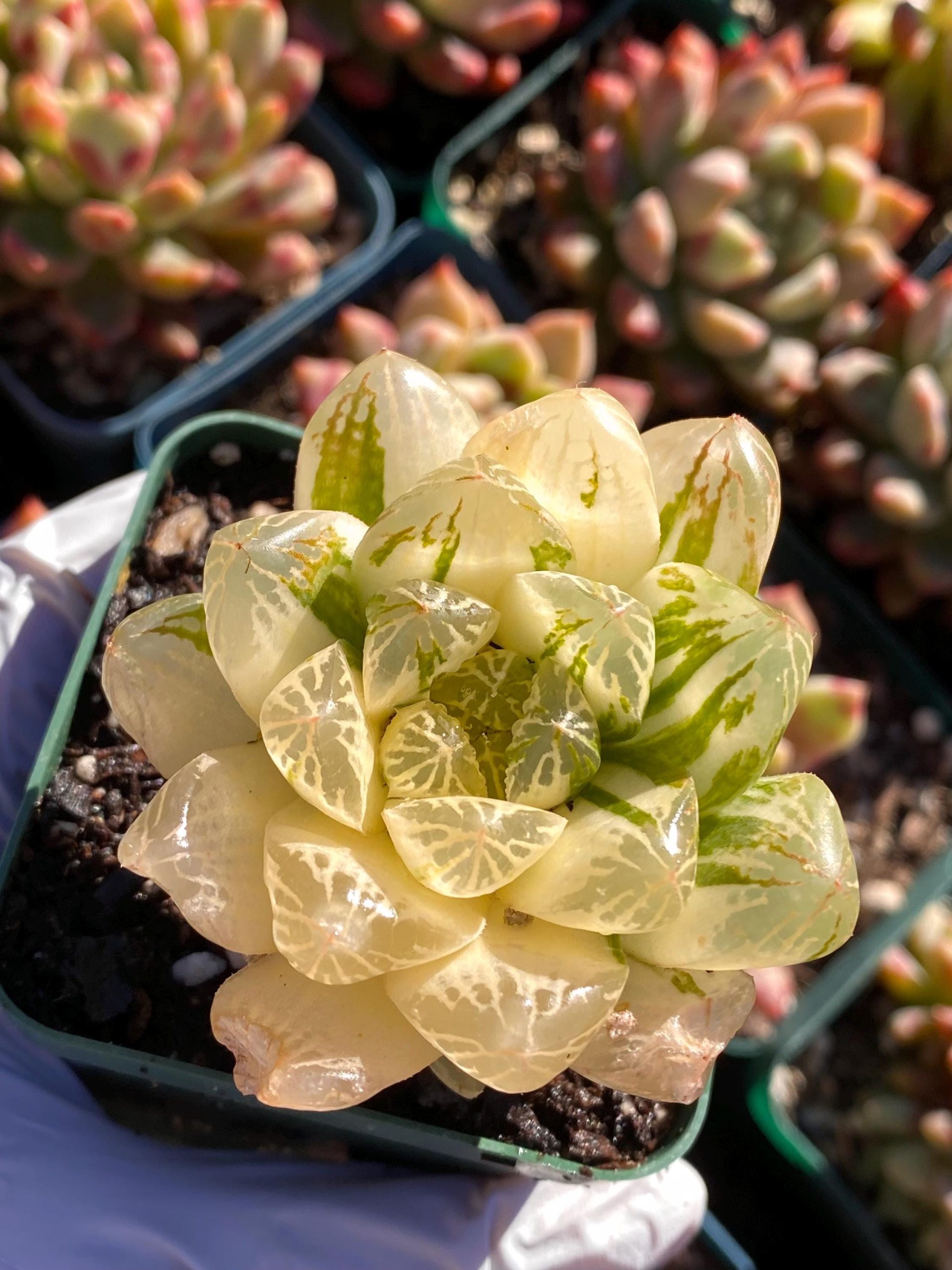 Rare succulent: imported succulent variegated Haworthia cooperi var. pilifera (Baker) M.B.Bayer cluster